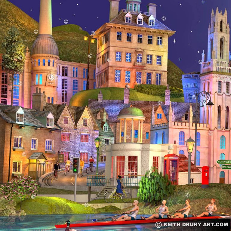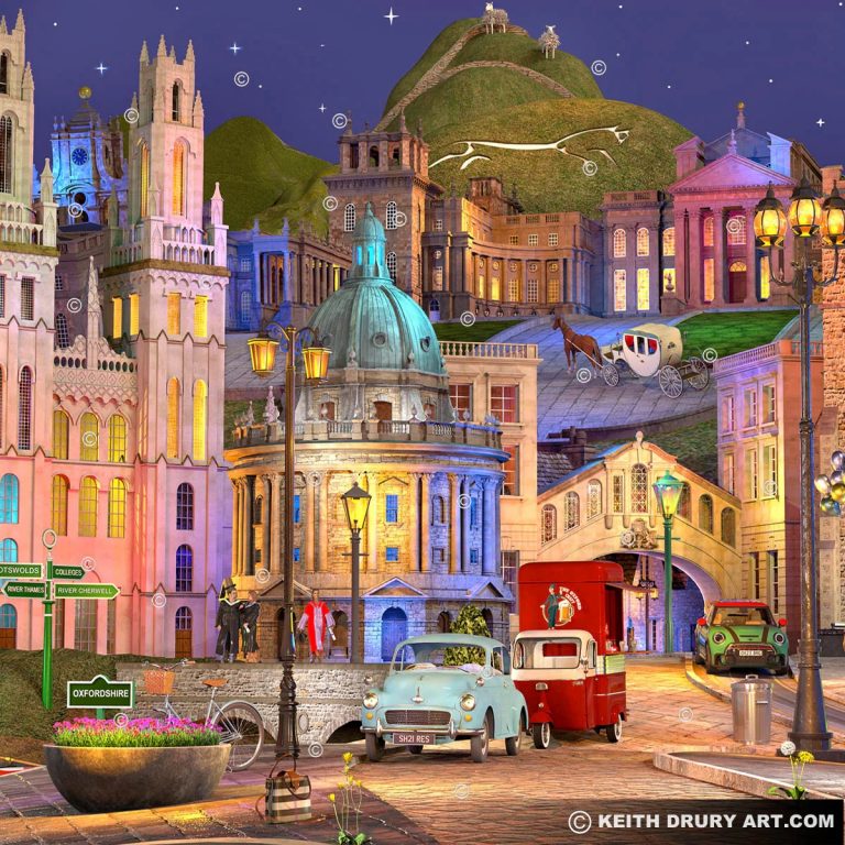 Dolphin Gallery is thrilled to announce an exciting giveaway opportunity in collaboration with the popular artist Keith Drury, who has created a stunning 32” limited-edition print that captures the essence of Wantage’s most iconic landmarks.